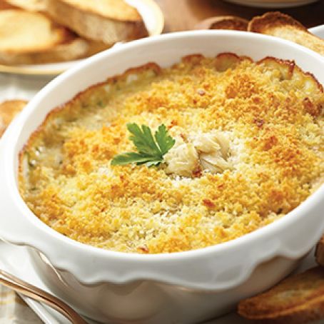 Spread crabmeat in prepared baking dish, then top with Brie mixture. Toss together panko and remaining 2 teaspoons oil; sprinkle over the top. Bake dip until bubbling and topping is golden, about 15 minutes. Serve dip with toasted baguette slices.