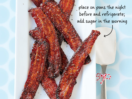 Make-ahead: Place bacon on pans the night before and refrigerate; add sugar in the morning.