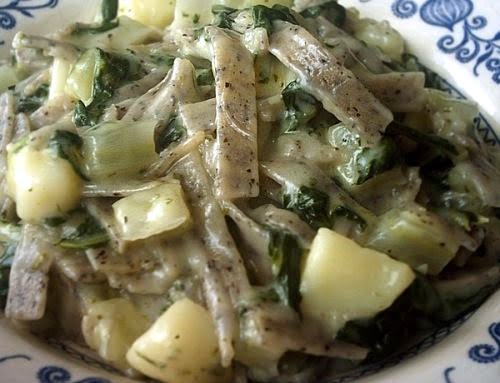 A classic comfort food dish from Lomardia. There are endless variations to the recipe, but the theme is still the same: pizzoccheri, potatoes, cabbage, and mountain cheese.