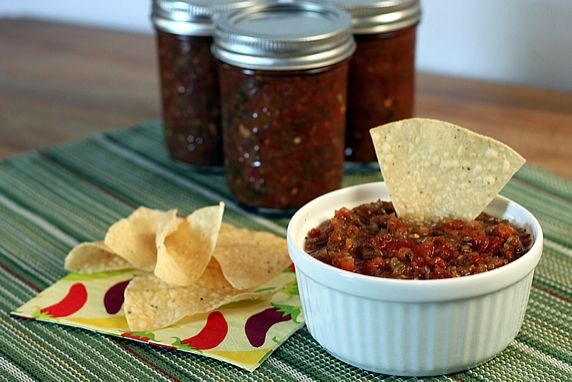 FOR WATER PROCESS CANNING: Bring salsa to boil on stove top; reduce heat and simmer uncovered for 15 minutes. Add to hot sterilized jars leaving 1/2" of headspace, and water process in water canner 15 minutes for half pints, 20 minutes for pints. Turn off heat, and leave jars in hot water for 5 minutes. Remove from canner and let rest undisturbed for 12-24 hours.