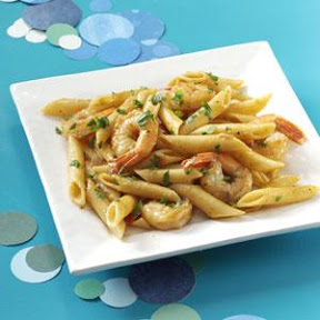 Cook pasta according to package directions. Meanwhile, in a Dutch oven, saute onion in butter and oil until tender. Add garlic; cook 1 minute longer. Sprinkle shrimp with seafood seasoning; add to pan.