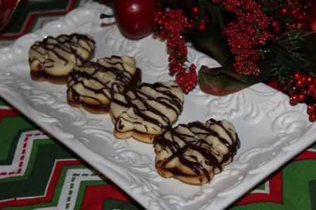 When cookies are cool, melt chocolate and shortening then add raspberry extract to taste. Note: the chocolate may seize up when you start adding the extract. You can add more extract or shortening to remedy this. You may also need to warm it up more to get it nice and melted because the extract will also cool the chocolate off a little.