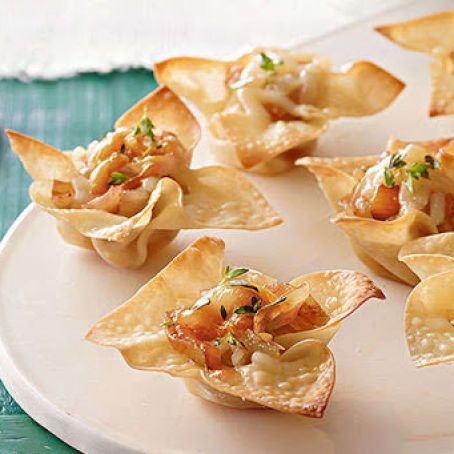 Spoon 1 tablespoon onion into each baked wonton cup.