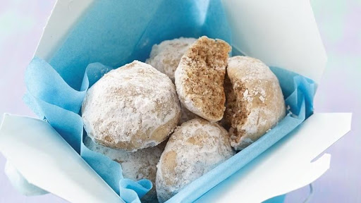 In medium bowl, mix coating ingredients. Working in batches, gently roll warm cookies in coating mixture. Cool on cooling rack 5 minutes. Roll in mixture again.