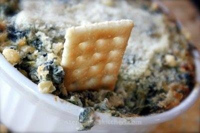 3. Place in a baking dish and bake at 350 degrees for about 25 minutes. Sprinkle with Parmesan cheese and return to the oven for an additional 10 minutes. Serve with crackers.