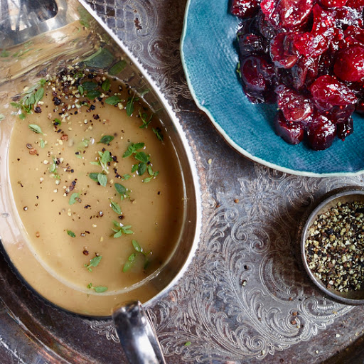 MAKE AHEAD: The gravy can be refrigerated for 3 days. Reheat gently; stir in a few tablespoons of water if the gravy is too thick.