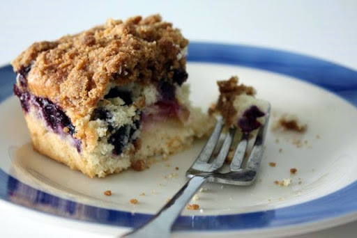 3. In a separate bowl mix together 2 cups flour, baking powder, and salt. Stir into sugar mixture, alternating with milk. Stir in blueberries. Pour into greased 8x8 inch pan.