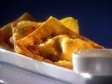 Lay out an even number of wonton wrappers (10 should be enough). Spoon 1 teaspoon of the cheese mixture in the center of a wrapper and brush the edges with water. Cover with another wrapper and crimp the edges so they are tightly sealed.