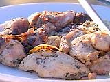 Turn the chicken skin side down and scatter the lemon slices and sprigs of rosemary over each chicken. Season with salt and pepper. Roll each chicken up, cover with plastic wrap and refrigerate for at least 1 hour.