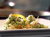 Heat 2 tablespoons olive oil with the butter in a medium saucepan over medium heat until the butter melts. Add the pearl onions, sugar, and lemon juice and cook, stirring frequently, until the onions are browned, 5 to 6 minutes. Add the lemon slices, peas, and lemon zest and continue cooking until the peas are hot. Season with salt and pepper. Dump the vegetables over the potatoes in the bowl, drizzle with extra-virgin olive oil add the parsley and dill and taste for salt and pepper. Scatter the watercress over the top, fold it in just until it wilts and call it a day.