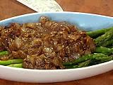 Stir in thyme, mustard, balsamic vinegar and pepper into onions and toss with asparagus to coat.