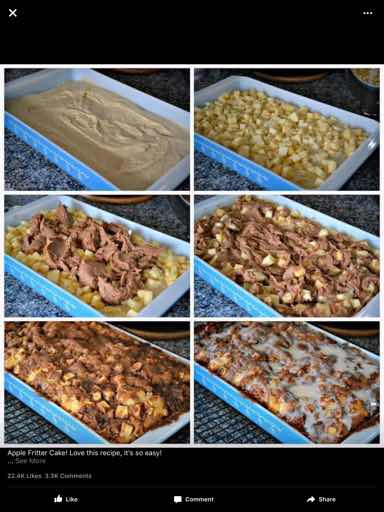 Start by mixing all the ingredients for the batter (except the butter)together in a bowl. Once combined, carefully pour in the melted butter. If you do this part with your mixer at a high speed it will splash everywhere. So slow is best. Pour the batter into a greased 9x13 pan, any smaller and it will overflow while baking. Evenly distribute the apples over the top of the batter. In a separate bowl mix together the topping , it will be thick so do your best to drop scoops of it evenly over the apples then take a knife and drag it in a swirly motion all over the pan allowing the topping to make friends with the apples and the batter below.