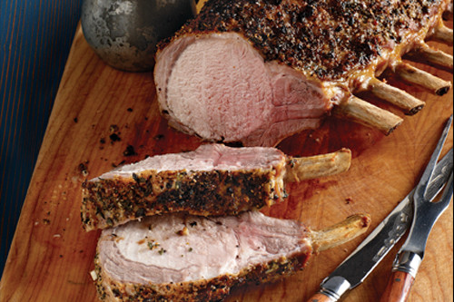 • 1 6-8 bone rack of pork, chine bone removed, bones frenched, and fat trimmed to 1/4 inch
