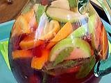 Combine wine, apple, orange, raspberries in a pitcher, add simple syrup, to taste. Refrigerate for at least 30 minutes and up to 1 day. Serve over ice, garnish with mint and top with a few splashes of club soda, if desired.