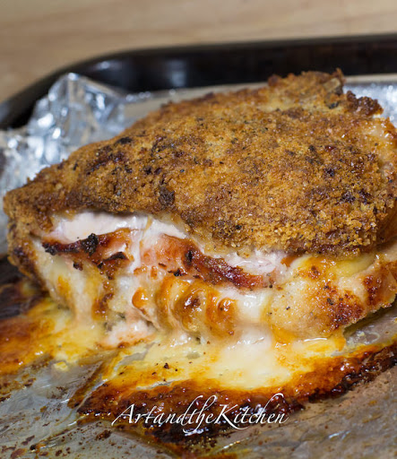 Transfer to baking pan with rack and continue baking in oven at 350 degrees until done. Approximately 30- 40 minutes. (depends on thickness of your pork chops)