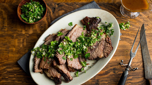 In a bowl, toss together parsley, lemon zest and horseradish to make gremolata. Slice meat against the grain and serve with the sauce, garnished with horseradish gremolata and sea salt.