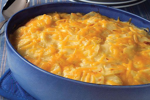 Layer potatoes and cheese sauce alternately in 2-qt. casserole sprayed with cooking spray, ending with cheese sauce.