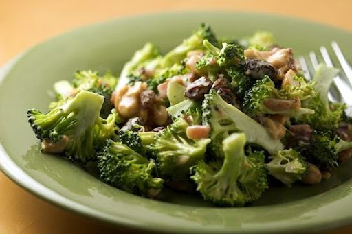 2. In a medium bowl, combine the broccoli, onion and raisins. In a small bowl, whisk together the vinegar, sugar and mayonnaise. Pour over broccoli mixture, and toss until well mixed. Refrigerate for at least two hours.