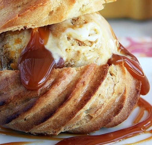 Pumpkin Ale Profiteroles with Cinnamon Caramel Sauce
