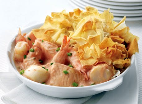 Entertain with elegance by topping this pot pie with an attractive, but easy, phyllo crust. The gently poached seafood enveloped in a rosé sauce will make your dinner party extra-special. A lightly dressed green salad on the side is the perfect accompaniment
