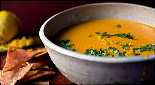 CARROT & TAHINI SOUP w/PITA CRISPS 1 Picture