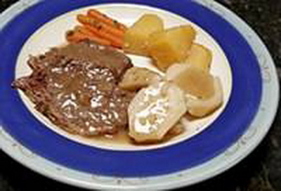 This is an old-fashioned beef pot roast with vegetables and gravy. Feel free to add other vegetables to this pot roast, such as small white onions, parsnips, or sweet potato chunks.