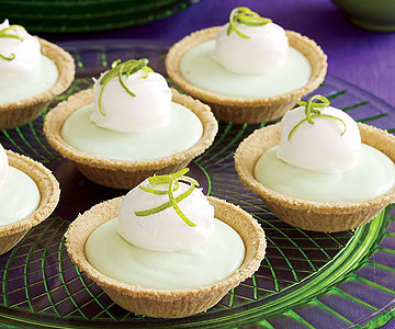 Add sweetened condensed milk to gelatin mixture; beat until well combined. Fold in whipped cream and then divide evenly among prepared crusts. Refrigerate at least 2 hours, or until firm. Garnish with additional whipped cream and lime zest, if desired.