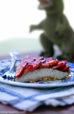 5.Top with sliced strawberries (I did a sort of spiral-towards-the-center thing) and sprinkle with flaked, unsweetened coconut, if desired.