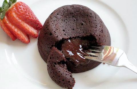 5. Invert each mold onto a plate and let sit for about 10 seconds. Unmold by lifting up one corner of the mold; the cake will fall out onto the plate. Serve immediately.