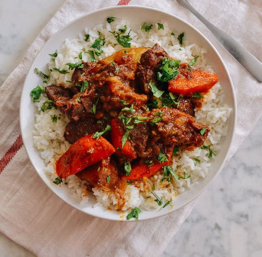 Remove the pot from the oven and stir in the carrots and potatoes. Transfer back to the oven and cook uncovered for another 45 minutes, until the potatoes and carrots are tender.