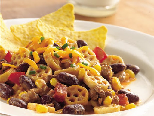Stir seasoning mix, water, uncooked pasta, corn, beans and tomato into beef. Heat to boiling; stir. Reduce heat to medium-low. Cover; cook 10 to 15 minutes, stirring occasionally, until pasta is desired doneness and most of the liquid has been absorbed.