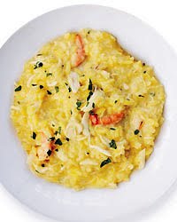 3.Melt the butter in a large skillet. Add the shallot and cook over moderate heat until softened, about 2 minutes. Add the shrimp and crab and cook until just heated through. Scrape the seafood into the risotto and stir in the parsley and mascarpone. Serve immediately.