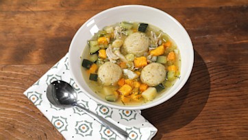Prepare the matzo ball mix according to box directions. Remove to the refrigerator for the instructed amount of time.