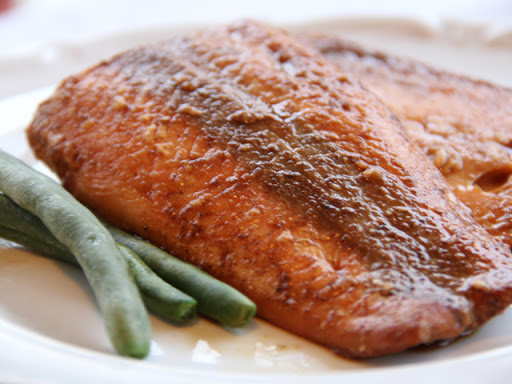 Preheat your oven to 325 degrees F. Then in a small bowl mix together all ingredients for sauce (soy sauce, lemon juice, ginger, cinnamon, and pepper). Next, place the salmon filets in a small baking dish, and pour the marinade over the filets. Bake for about 25 minutes or until salmon is flaky.