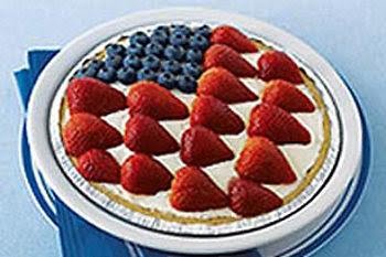 3. REFRIGERATE 3 hours or until set. Arrange berries on cheesecake to resemble flag.
