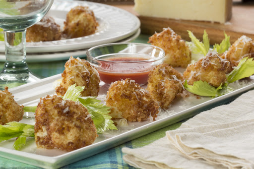In another medium bowl, lightly beat eggs. Dip cauliflower florets in egg, then roll in bread crumb mixture until evenly coated on all sides, pressing gently, if needed.