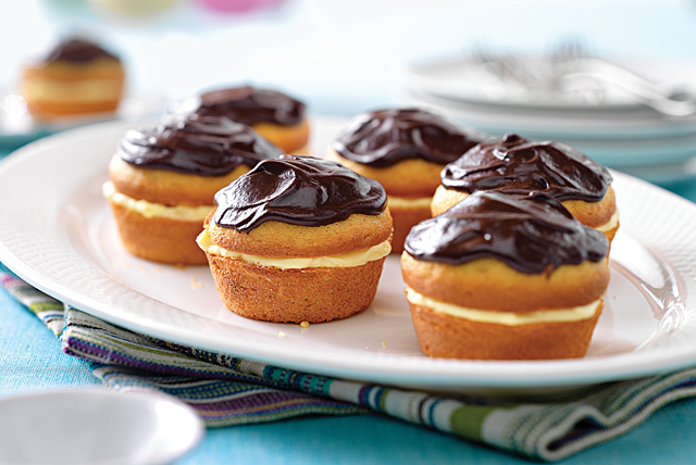 Small in size, yet big in flavour and handy to eat, these cream-filled miniatures of the famous Boston Cream Pie dessert are sure to Bring joy to everyone's face grown-ups included.
