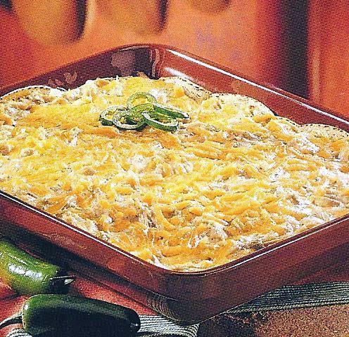 In a bowl, combine the chicken, chilies, broth, soups and onion; set aside. Warm tortillas in the microwave according to package directions. Layer half of the tortillas on the bottom of a greased 9x13 baking pan, cutting to fit pan if desired. Top with half of the chicken mixture and half of the cheese. Repeat layers. Bake, uncovered, at 350° for 30 minutes.