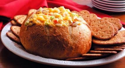 Served in a bread bowl, this colorful cheese