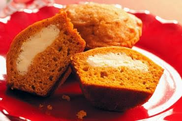 2. Fill 12 greased muffin cups one-third full. In a small mixing bowl, beat the filling ingredients until smooth. Drop by tablespoonfuls into the center of each muffin. Top with