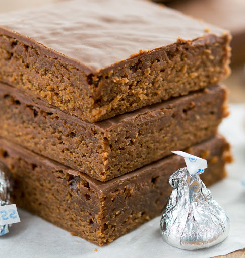 Hershey’s Kisses Brownies are the chocolatey indulgence you need in your life right now. Chocolate brownies are topped with a creamy chocolate frosting made from Hershey's Kisses, to make some of the richest, moistest brownies you've ever had. Serve these brownies with a scoop of your favorite ice cream and veg-out on the couch--you deserve it!