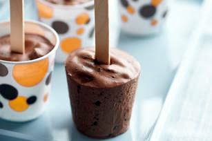 SPOON into 9 (3-oz.) paper or plastic cups. Insert wooden pop stick or plastic spoon into each for handle. Freeze 5 hours or until firm.