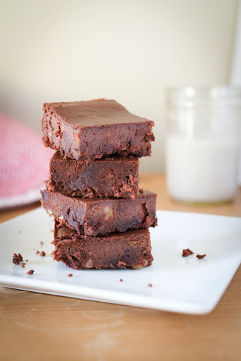This fudgy maple black bean brownie recipe was adapted from the Whole Food's Flourless Black Bean Brownie recipe.