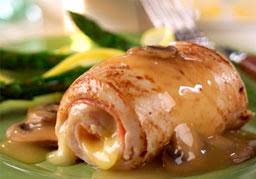 3. Remove the toothpicks, and transfer the breasts to a warm platter. Blend the cornstarch with the cream in a small bowl, and whisk slowly into the skillet. Cook, stirring until thickened, and pour over the chicken. Serve warm.