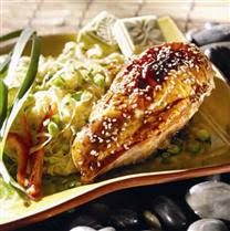 2.HEAT oven to 350ºF. Pour 1/2 cup marinade into 13 x 9 x 2-inch glass baking dish. Add chicken. Discard remaining marinade.