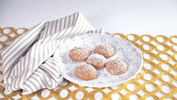 Turn the mixture to low speed, add the flour and beat until combined. Form the dough into tablespoons, shape into balls and place on baking sheet. Bake until cookies are golden brown and slightly cracked, about 15 minutes. Remove from oven to a wire rack to cool. Dust with confectioners sugar using a sifter.