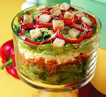 romaine, red pepper, croutons and Parmesan cheese. In a jar with a tight-fitting lid, combine the dressing ingredients; shake well. Serve with salad.