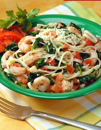 1. Cook fettuccine according to package directions. Meanwhile, in a large skillet, saute the spinach and garlic in oil for 2 minutes or until spinach begins to wilt. Add the shrimp, tomatoes, Italian seasoning and salt; saute for 2-3 minutes or until shrimp turn pink. Drain fettuccine and add to skillet; toss to coat. Sprinkle with Parmesan cheese.