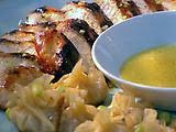 Serve 4 of the chicken breast halves with all of the vinaigrette spooned over top and all of the beggar's purses on the side. Reserve remaining chicken for stroganoff, if desired.