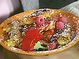 The next day, preheat oven to 350 degrees F. Spread Praline Topping evenly over the bread and bake for 45 minutes, until puffed and lightly golden. Serve with Raspberry Syrup.